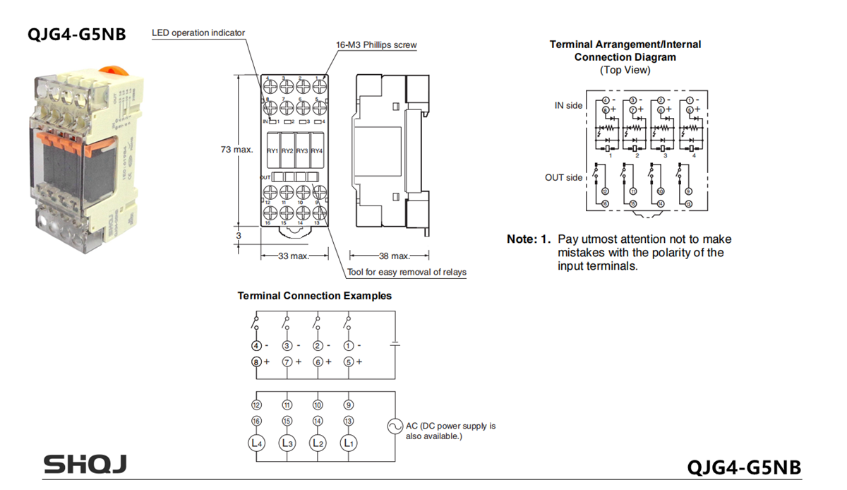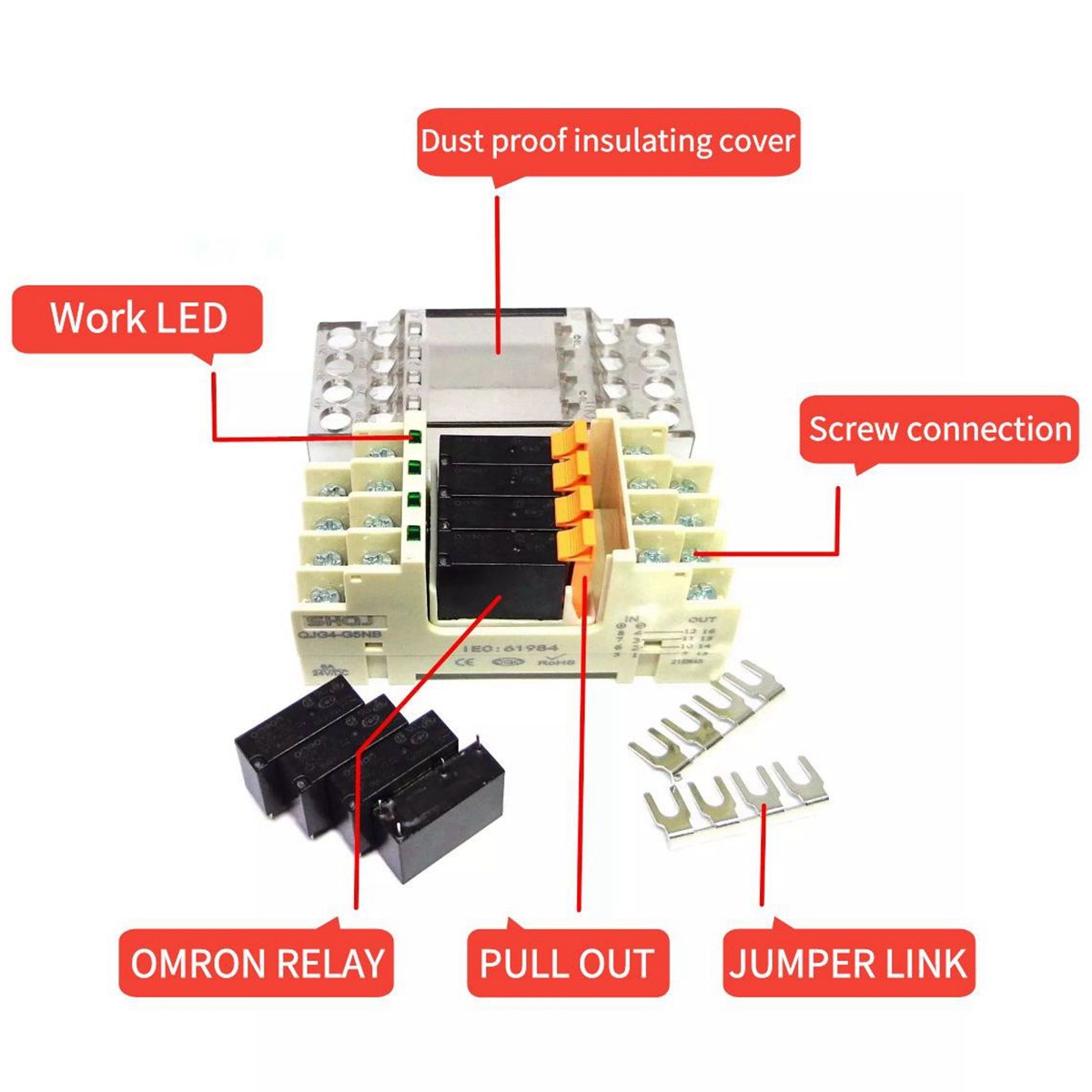 QJG4 4PST-NO, 250VAC, 30VDC, 5A Compact Terminal Relay with 4 Independent Outputs